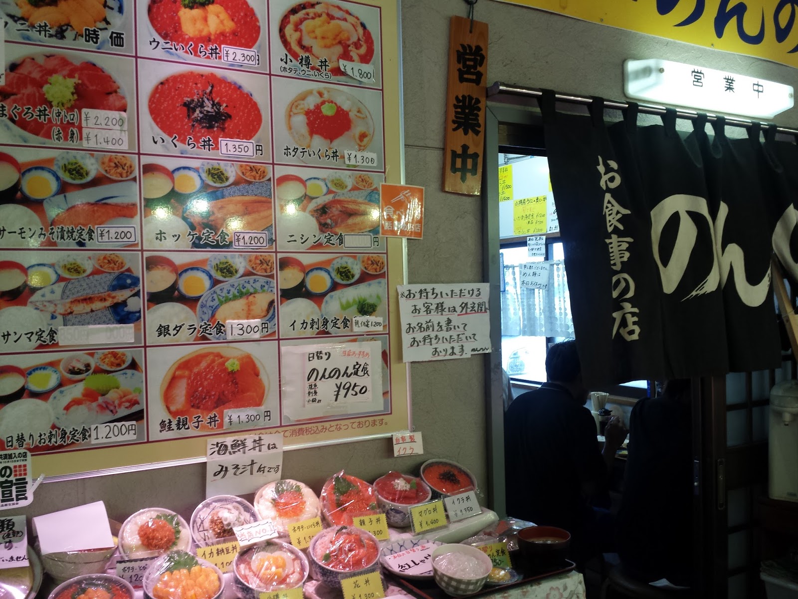 可能接近關門時間 , 人影都唔多個 , 都係買水果同海產咁 , 對比札幌既二條市場 , 依到的確平少少 .